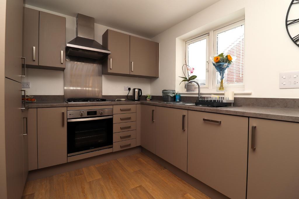 Upon entering, you are welcomed into a bright and airy entrance hall that sets the tone for the rest of the home. The lounge provides an inviting space for relaxing or entertaining, while the heart of the home, a contemporary open-plan kitchen and dining area comes fully equipped with integrated appliances and plenty of space for family gatherings. From here, double patio doors open onto a beautifully maintained rear garden featuring both a patio and lawn, ideal for barbecues, children's play, or simply enjoying the outdoors.