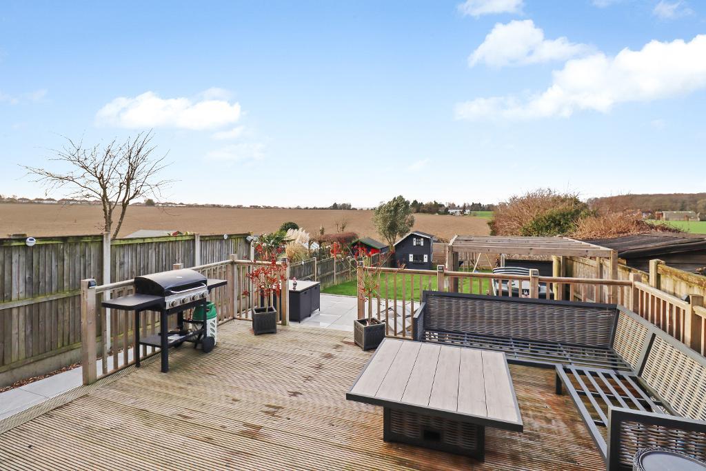 Externally, the substantial rear garden is arranged into distinct areas, including a large decked terrace ideal for entertaining, along with a generous lawn area. The uninterrupted rural views from both the house and garden create a wonderful sense of space and tranquillity.