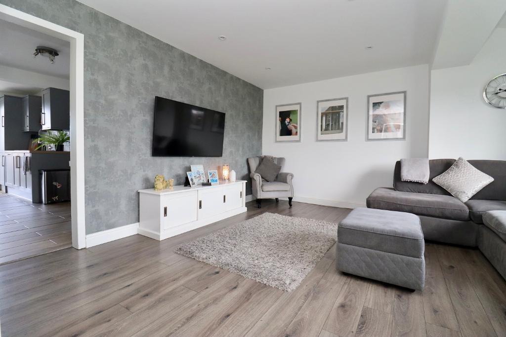Inside, the accommodation has been thoughtfully modernised throughout. The heart of the home is the contemporary kitchen/dining room, featuring a stylish breakfast bar and ample space for family dining and entertaining. The kitchen flows seamlessly into a separate utility room, adding practicality and additional storage. The great sized lounge provides a comfortable and inviting living space, with large windows allowing natural light to flood in while framing the glorious countryside views. A convenient downstairs cloakroom completes the ground floor.