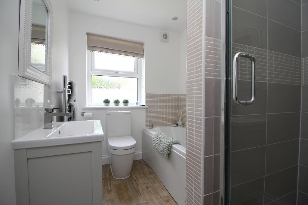Designed with comfort and practicality in mind, the ground floor welcomes you with a spacious entrance hall leading to three generous double bedrooms. The main bedroom benefits from a sleek en suite shower room, while the beautifully appointed 4 piece family bathroom features both a bath and separate shower. Adding a touch of luxury, the hallway, en suite, and bathroom all enjoy underfloor heating.