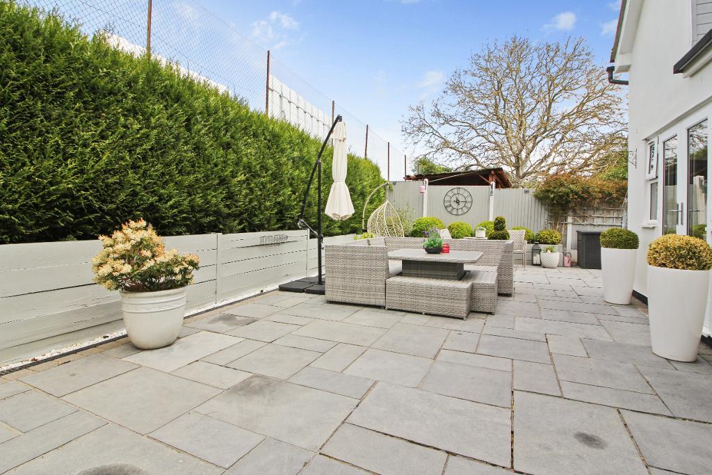 Outside, the rear garden has been thoughtfully arranged with both patio and lawn areas, offering space for outdoor dining, entertaining, or family enjoyment.
