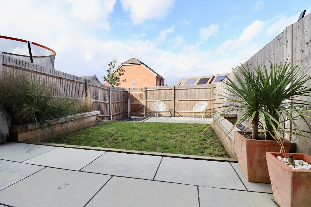 Located towards the end of the development is this 3 bedroom terraced house. The layout of this home is superb, the entrance hall takes you to a good size lounge and the kitchen / dining room beyond. Patio doors lead you to the landscaped rear garden with 2 patio seating areas and lawn in the middle.