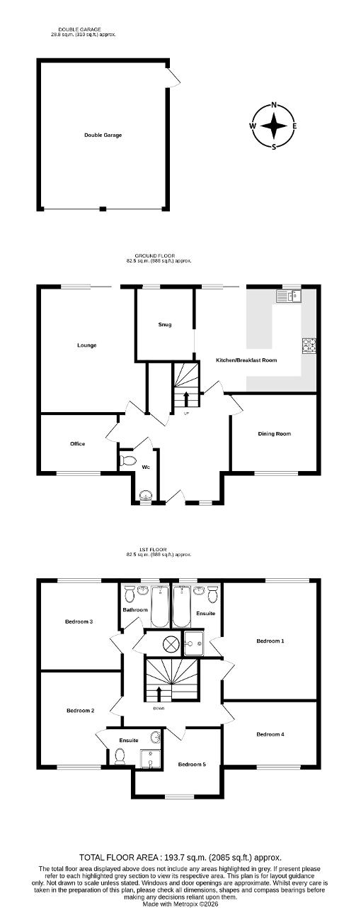 Upstairs, the gallery landing leads to 5 well proportioned bedrooms, including 2 en-suites and a main family bathroom. There is also a substantial loft, offering excellent storage or potential for conversion.