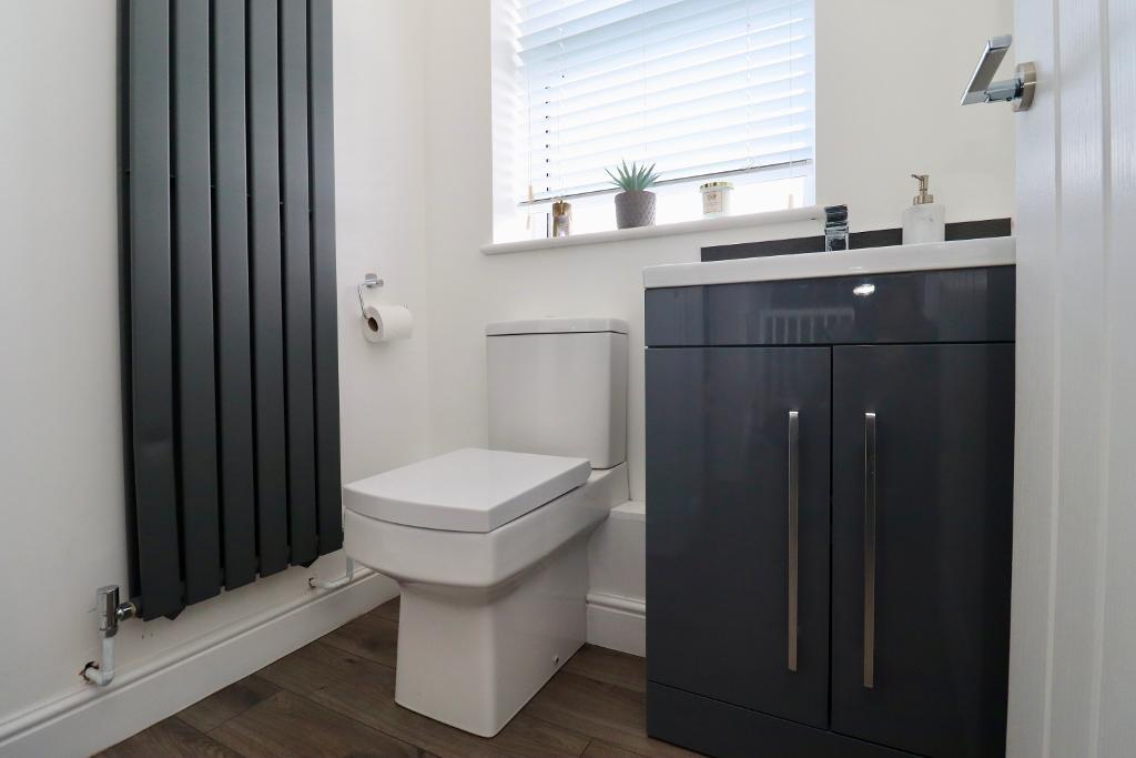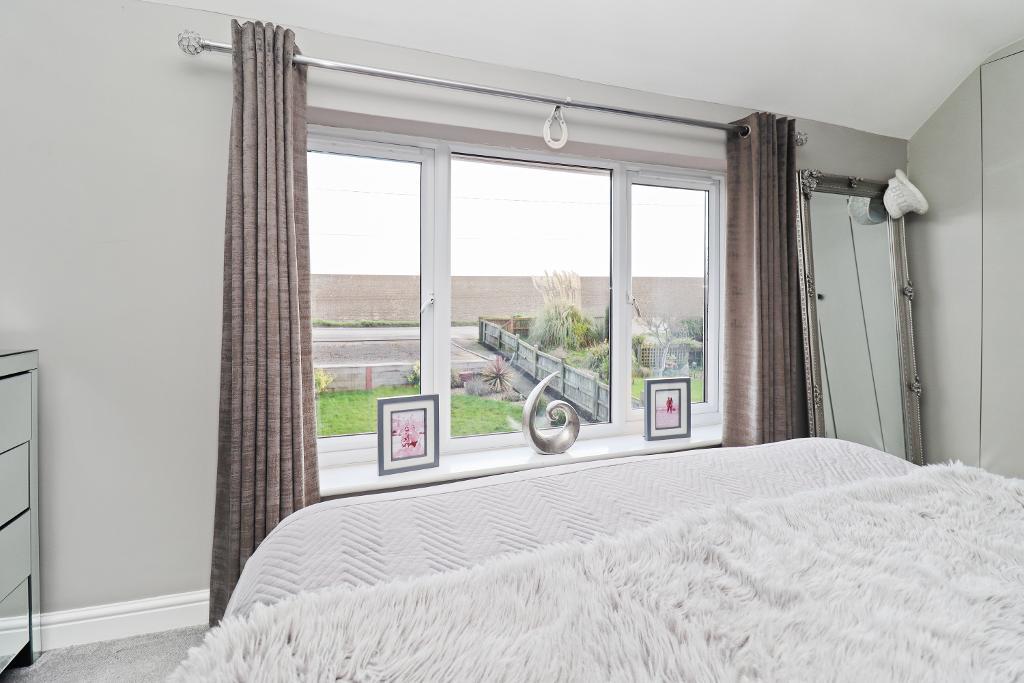 Upstairs, the property continues to impress with three well-proportioned bedrooms and a modern family bathroom finished to a high standard. The views from the bedrooms are particularly special, stretching across open countryside and offering a peaceful, scenic outlook rarely found in such a convenient location.