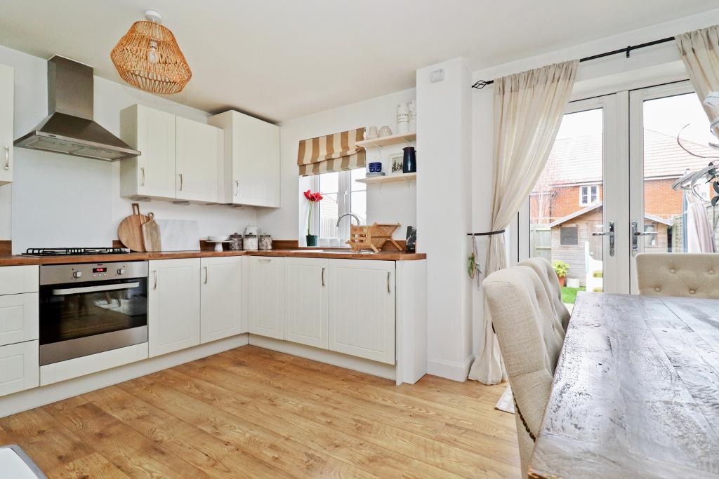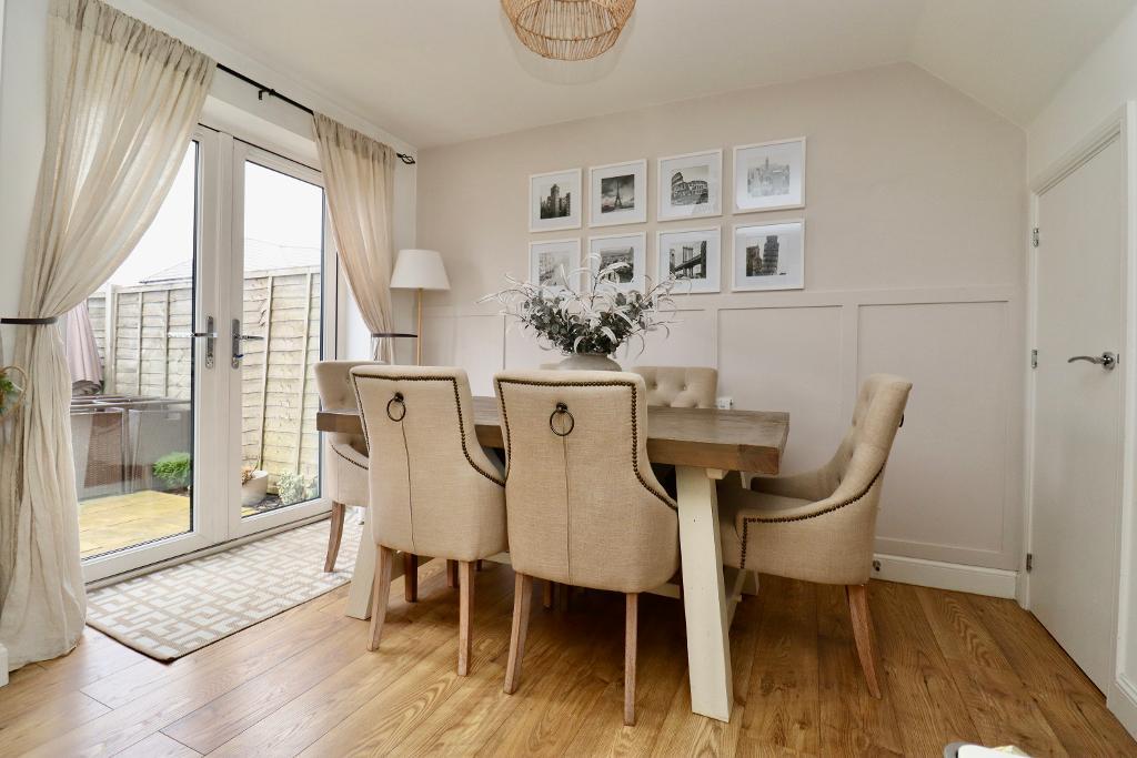 The modern kitchen benefits from integrated appliances including a dishwasher, washing machine and fridge freezer, and provides ample storage and worktop space. French doors open directly onto the rear garden, allowing plenty of natural light and creating a perfect space for both everyday living and entertaining.