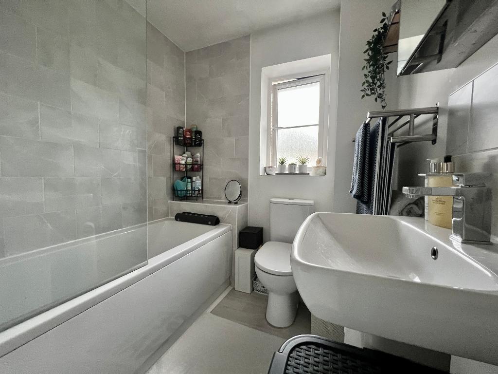 The family bathroom is finished to a high standard, featuring modern fixtures and a clean, sophisticated design, perfect for unwinding at the end of the day.