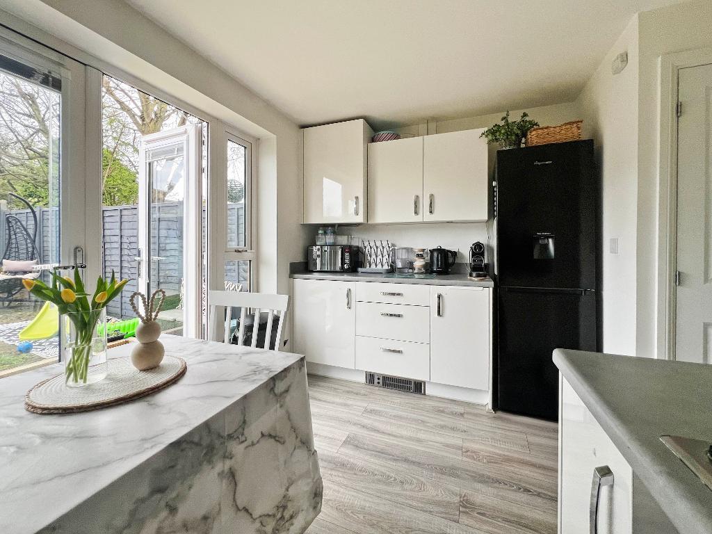 To the rear, the heart of the home reveals itself in the stunning kitchen/diner. Designed with both practicality and elegance in mind, this space is perfect for hosting intimate dinners or enjoying everyday family life. Contemporary fittings, ample storage, and direct access to the garden create a seamless indoor/outdoor experience.