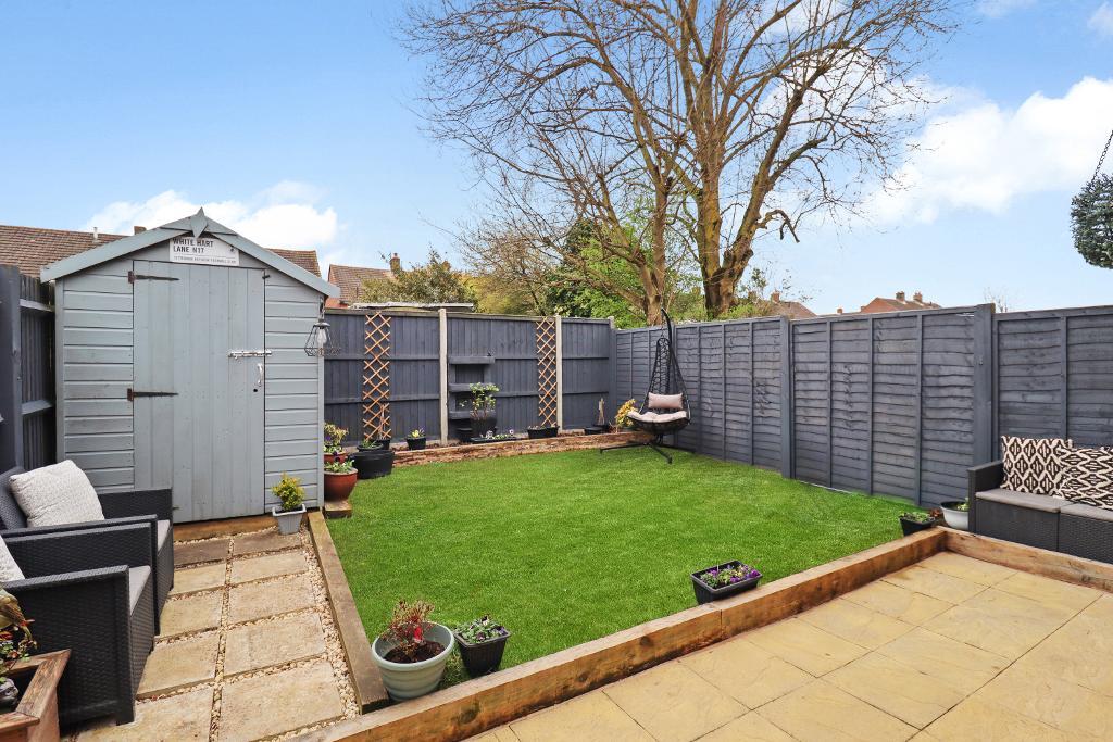 The private rear garden offers a delightful escape, ideal for al fresco dining, gardening, or simply enjoying peaceful moments outdoors. Whether entertaining guests or relaxing in the sunshine, this space is designed to complement your lifestyle.