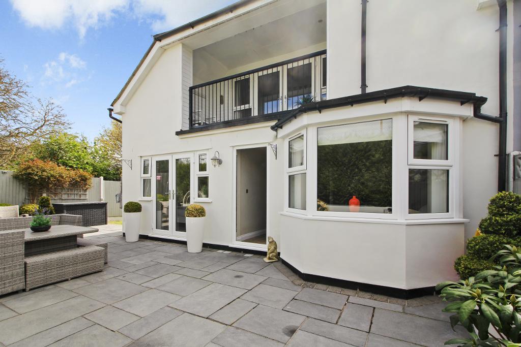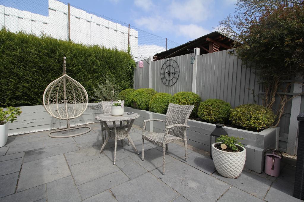 Outside, the rear garden has been thoughtfully arranged with both patio and lawn areas, offering space for outdoor dining, entertaining, or family enjoyment.